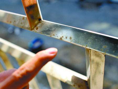 7.受表面保護用粘膜的污染。使304不銹鋼管建材受污染、生銹的原因有很多種,然而大致上,均是受大氣中浮游鐵粉或有害氣體中的成分,因附著、堆積、以及海風(fēng)中所含鹽分的附著所引起的。