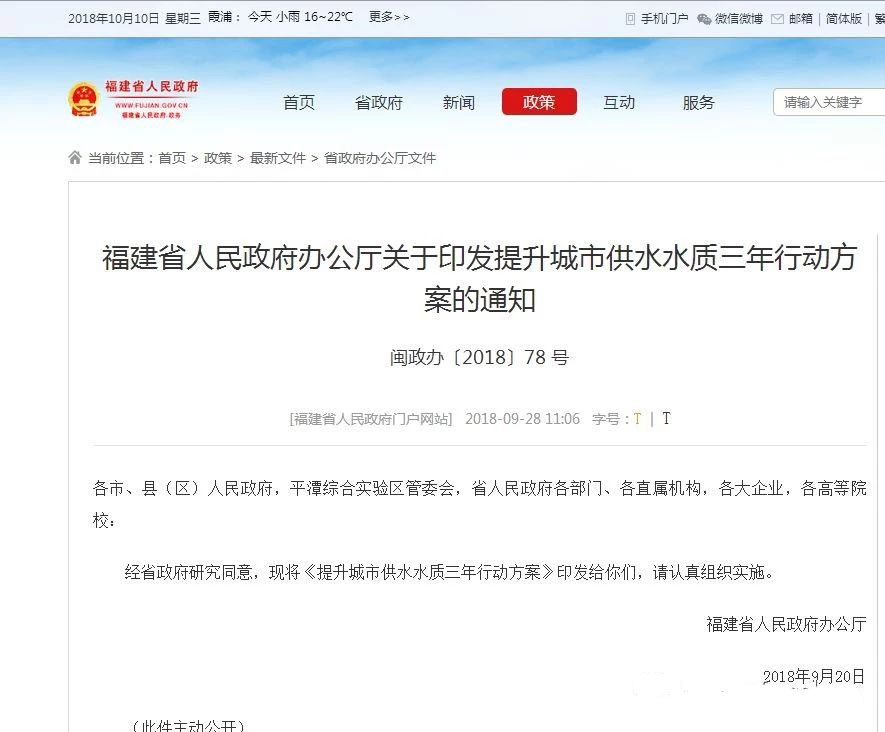 福建省是我國不銹鋼大省,全球大的不銹鋼產(chǎn)業(yè)群體在福安市,福建省先從省級高度重視不銹鋼水管的應(yīng)用普及,意味著我國不銹鋼水管產(chǎn)業(yè)的春天已正式到來。福建省人民政府辦公廳關(guān)于印發(fā)提升城市供水水質(zhì)三年行動方案的通知如下: